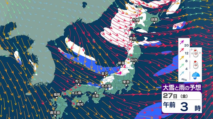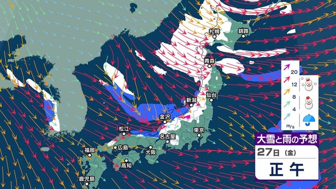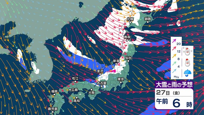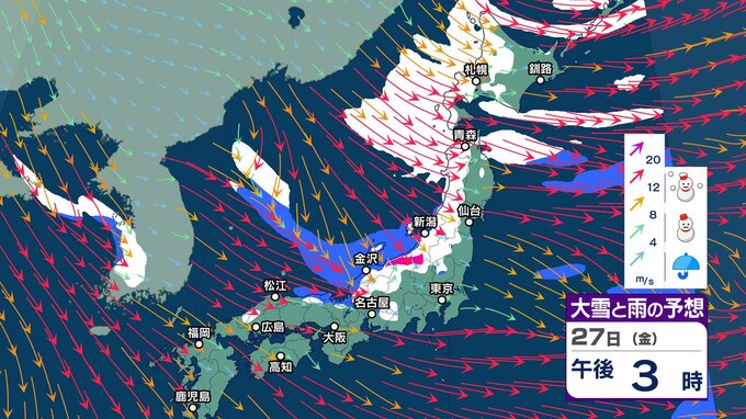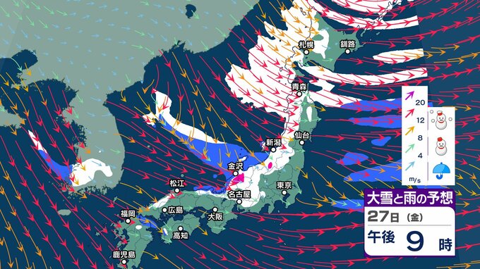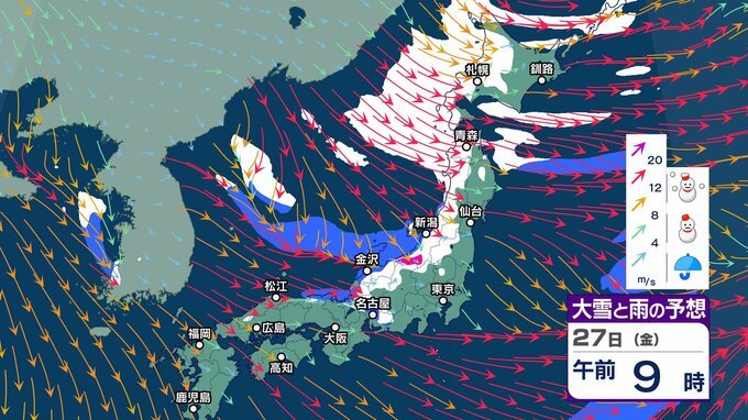 今週末にも嵐の使者 “強い寒気” 南下へ 冬型の気圧配置が強まり日本海側山沿いで大雪のおそれ【2週間天気】元日の太平洋側は晴れ 初日の出拝めそう【 雪と雨の動き 3時間ごとシミュレーション】 チューリップテレビ 2024年12月24日(火) 13:06 国内 天気 大雪と雨のシミュレーション 27日(金)