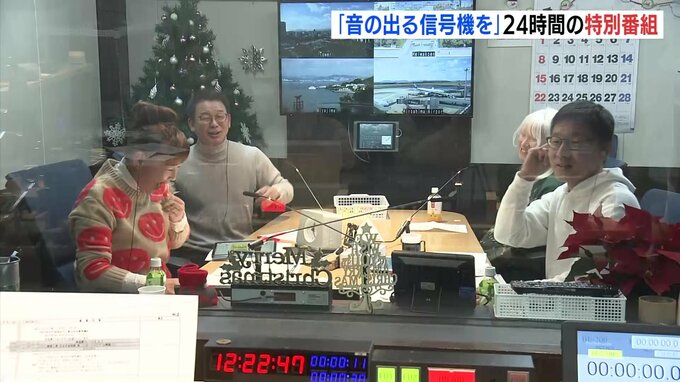 正午から始まった、「RCC ラジオ・チャリティ・ミュージックソン」は、24時間の生放送で音の出る信号機を設置するための募金を呼びかける特別番組です。ことしのテーマは、「この街で、あなたと過ごしたい。」おなじみのパーソナリティがスタジオに集まり、開始を告げました。