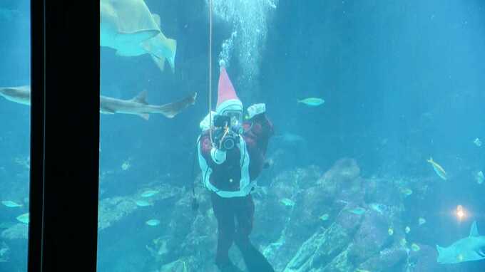 「クリスマスということで水槽を泳ぐのは魚だけではありません、サンタさんも一緒に泳いでいます」