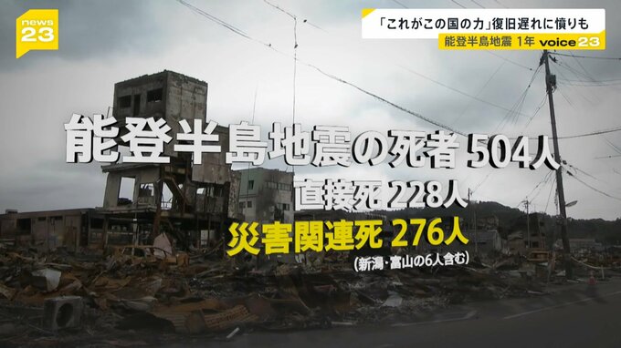 地震による死者はこれまでに504人。そのうち、避難所生活など急激な環境の変化で亡くなった災害関連死は276人(新潟・富山の6人含む)に上る見通しで、建物の倒壊などによる直接死228人を上回っています。