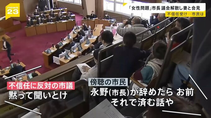 しかし、市議などからは辞職を求める声が相次ぎ、議会の閉会日となる12月20日、永野市長に対する「不信任案」を採決。賛成多数で可決されました。