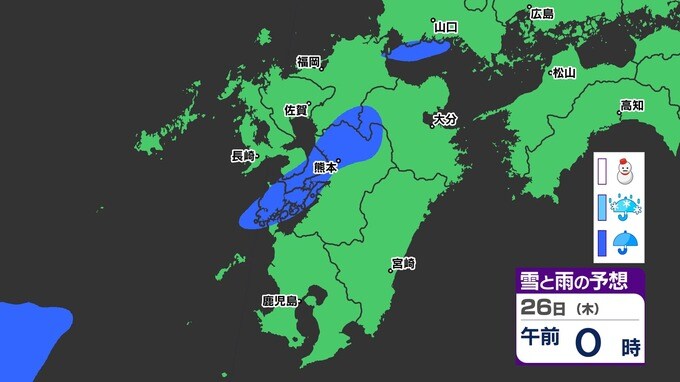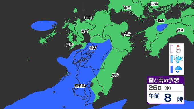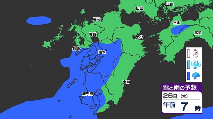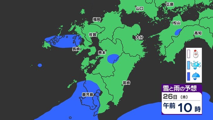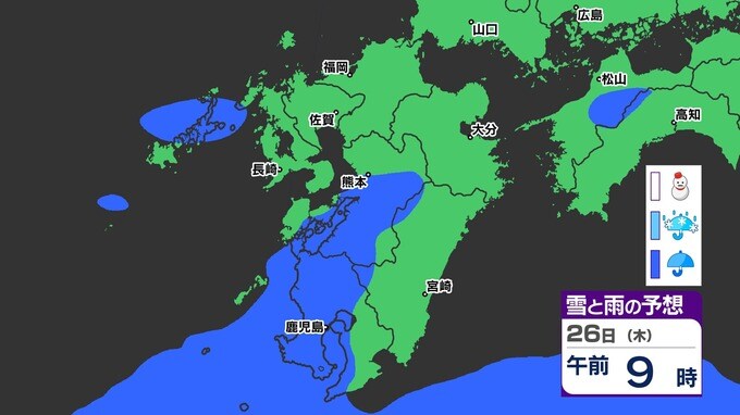 【1月1日元日】までの天気予報【福岡・佐賀・長崎・大分・熊本・宮崎・鹿児島】雨と雲のシミュレーション/初日の出情報 南日本放送 2024年12月25日(水) 12:30 国内 天気 25日(水)~26日(木)雨と雪のシミュレーション 画像でご覧いただけます。気温が高いので雪の可能性は低く、ほとんどの地域で雨でしょう。