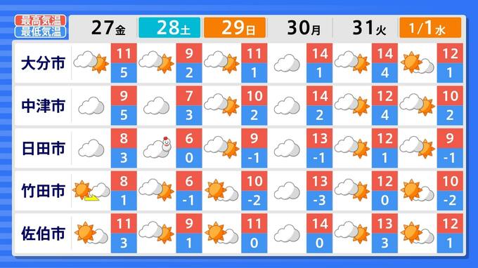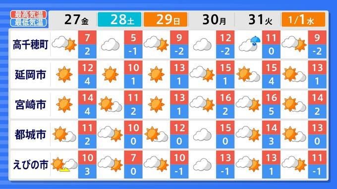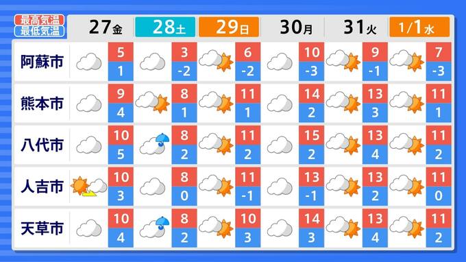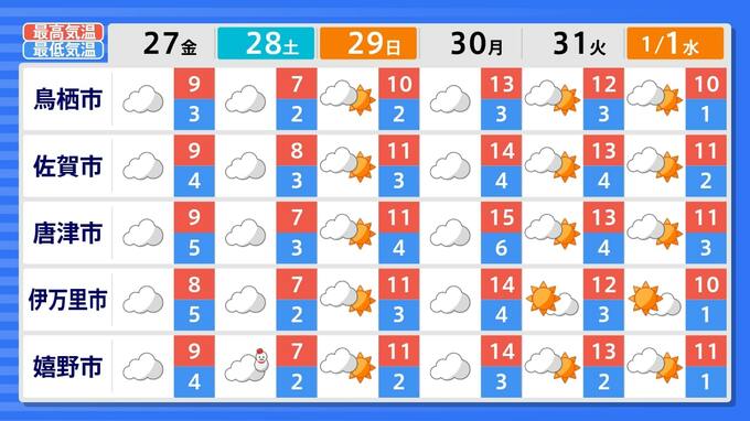 【1月1日元日】までの天気予報【福岡・佐賀・長崎・大分・熊本・宮崎・鹿児島】雨と雲のシミュレーション/初日の出情報 南日本放送 2024年12月25日(水) 12:30 国内 天気 元日までの週間予報/各地の初日の出時刻 27日(金)~29日(日)は気温が上がらず寒いでしょう。 1月1日元日は、晴れときどき曇りや、曇りときどき晴れが多く、初日の出が見られそうです。