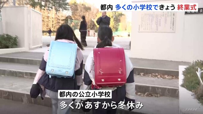 東京都内の多くの小学校ではきょう、終業式が行われました。およそ1260校ある都内の公立小学校では、多くがあすから冬休みです。東京・板橋区にある高島第五小学校でも午前8時半から終業式が行われ、子どもたちは…