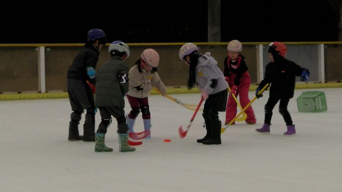 スケートリンクで開かれた体験教室には地元を中心に約20人の小学生が参加しました。「スケートは初体験」という子どもも多くいましたが、「進む」「止まる」など基本的な動作をひととおり学んだあとはアイスホッケーにも挑戦。3時間ほどでパックを追いかけミニゲームを楽しめるほどに上達しました。