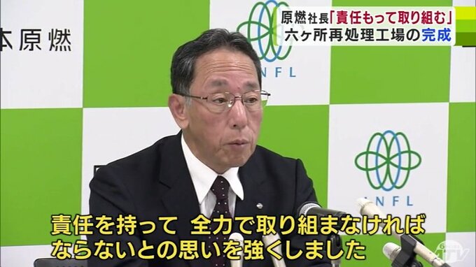 完成の延期が続く六ヶ所再処理工場について、政府が総力をあげて取り組むとする方針を示したことを受け、日本原燃の増田尚宏社長は「工場の完成へ責任をもって取り組む」と述べました。日本原燃 増田尚宏 社長「…