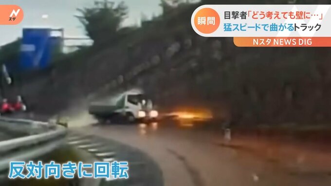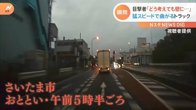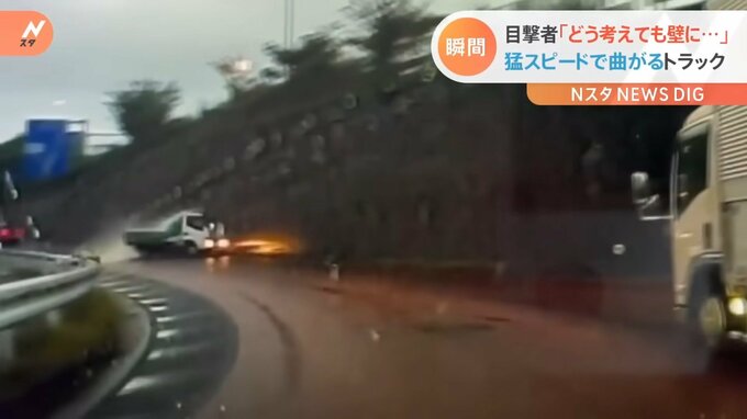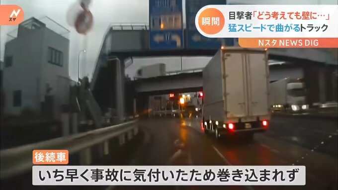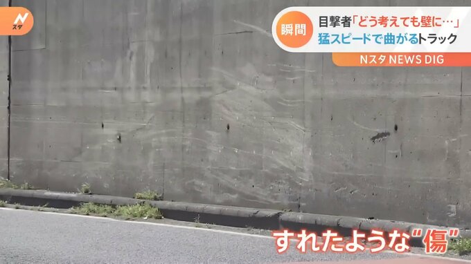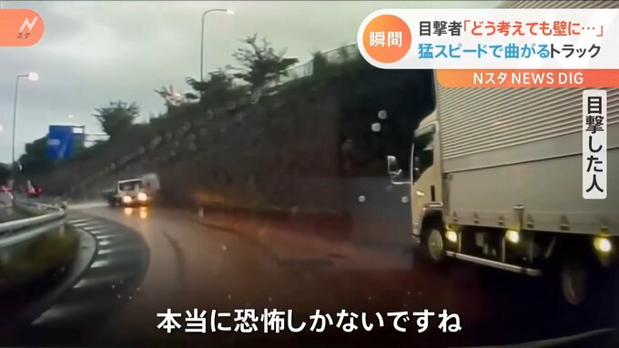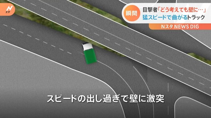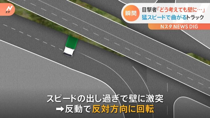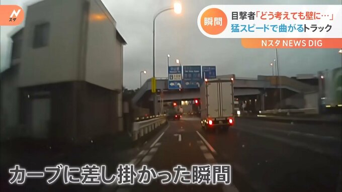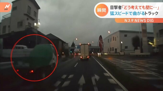 ■目撃者「どう考えても壁に…」猛スピードで曲がるトラック