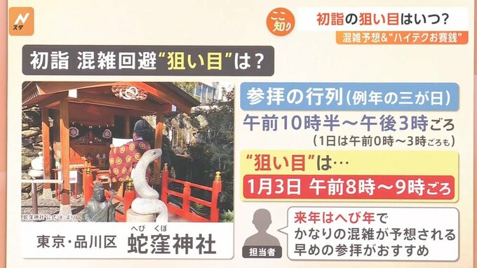 そこで混雑回避の“狙い目”を聞いてみると、ズバリ1月3日の午前8時~9時ごろで、少し前倒しで行くと空いているだろうとのことでした。