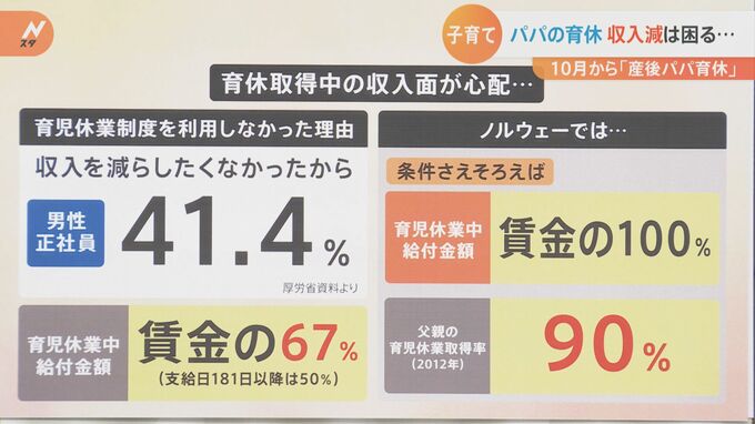 ■パパの育休に「収入減は困る」 海外では給付額“賃金の100%”も