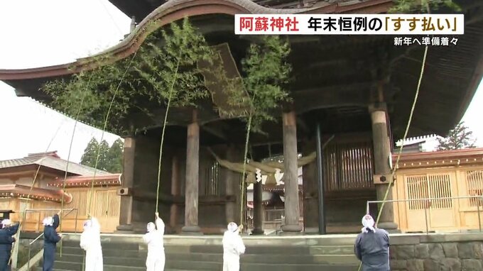 2024年も残り5日となり、熊本県阿蘇市の阿蘇神社では、年末恒例のすす払いが行われました。阿蘇神社では毎年この時期、1年間のほこりや災いを払い清める意味もこめて、すす払いを行っています。12月26日の朝は、神…