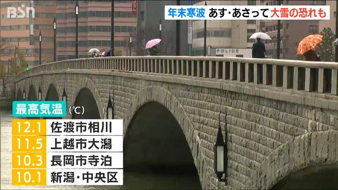 寒冷前線の通過前に暖かい空気が流れ込み、26日は気温が上がり、これまでの最高気温は新潟市 中央区でも20日ぶりに10℃を超えました。気温は朝がピークでこの後下がり続ける見込みです。12月としては異例の積雪となっていた山沿いも雪は小康状態で、積雪は今週初めから数十センチ減っています。