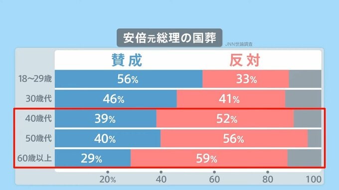 世論調査で「反対」が多いのは40代以降です。政治的な問題を指摘する声もありました。