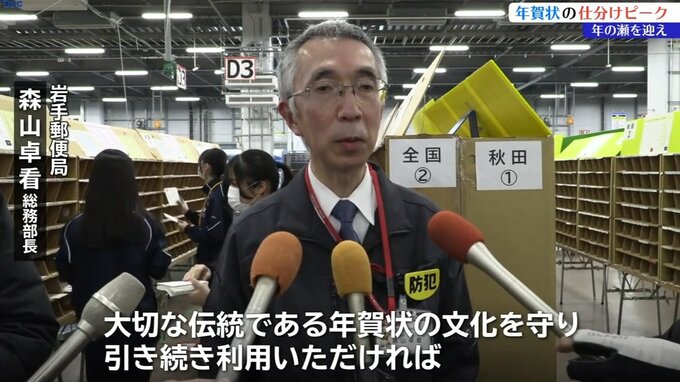 年の瀬を迎え北上市の郵便局では、年賀状の仕分けがピークを迎え、24時間体制での作業が続いています。