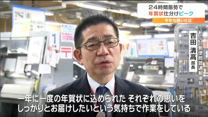 宮城県内の郵便局では、25日時点でおよそ440万通の年賀状を引き受けています。25日までに投函されたものは元日に配達される予定です。