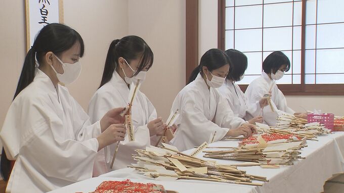 およそ30人の巫女が一つ一つ丁寧に手作りし、正月までに破魔矢4000体、福笹200体が用意されるということです。