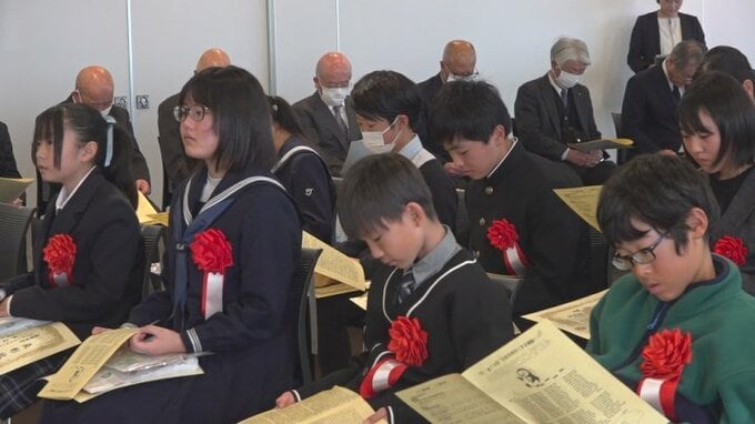 また最優秀賞を受賞した甲府西中2年の松木蘭実さんと、大月東小6年の田辺真緒さんが作文を朗読し、人を信頼することの大切さや偏見や差別のない社会について語りました。