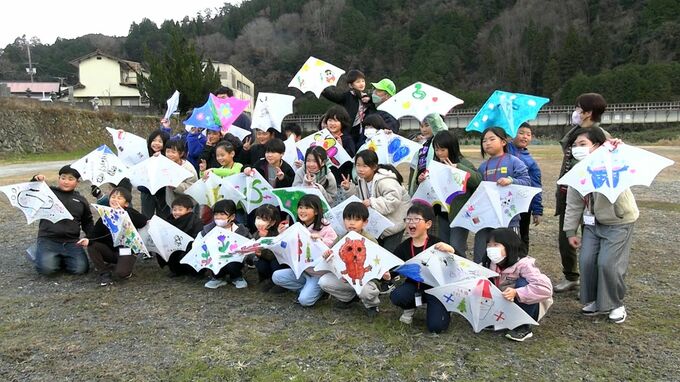 もうすぐ正月。岡山県真庭市で地元の小学生たちが凧揚げを楽しみました。