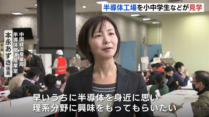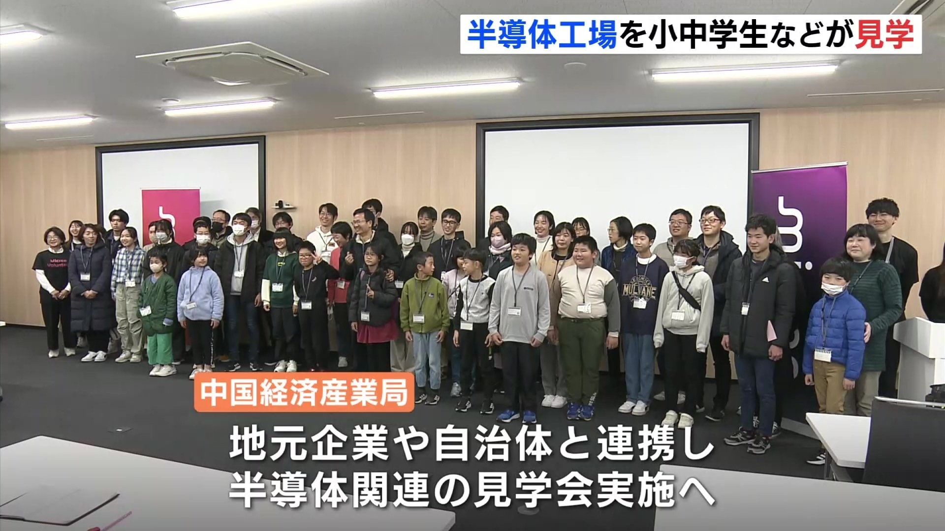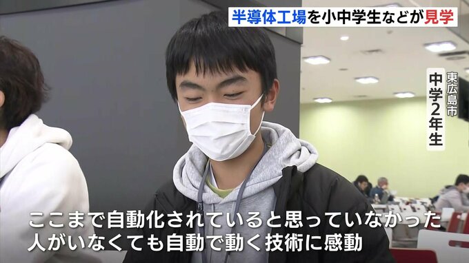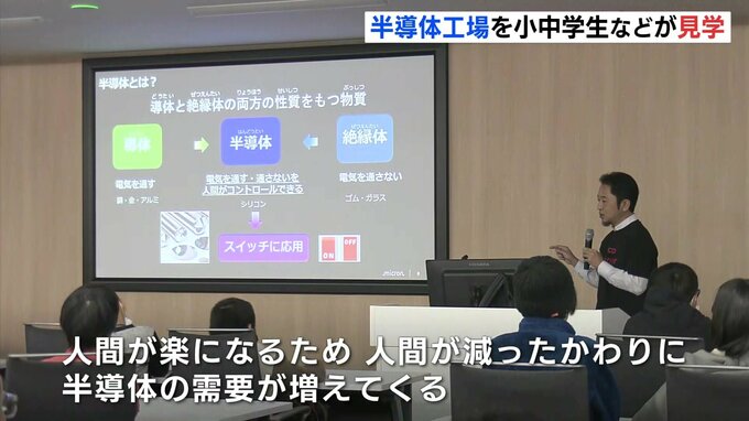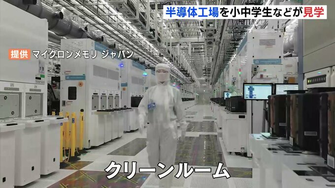 見学会には、東広島市や山口県などから小中学生、保護者合わせて42人が参加しました。東広島市の「マイクロンメモリ ジャパン」は、アメリカの半導体大手「マイクロン・テクノロジー」の日本法人です。