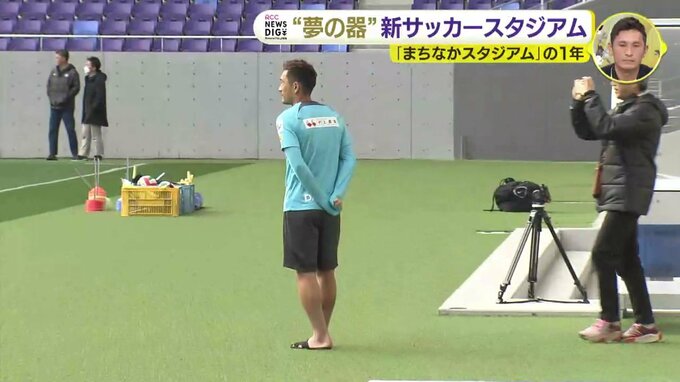 2月8日、こけら落としの試合となるプレシーズンマッチの2日前。初めてのスタジアムでの練習に青山敏弘選手は誰よりも早くでて「はだし」で感触を確かめていました。グッズショップには長い列ができるなど、完成を待ちわびた多くのファンが詰めかけ、試合前はスタジアムを一周しながら、出来上がったスタジアムを見ていました。