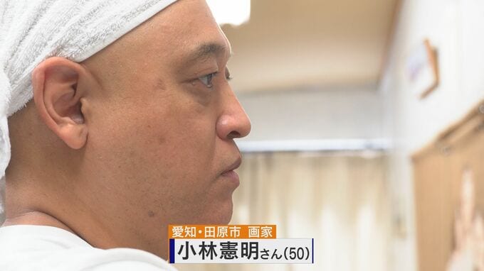 今年9月、能登半島地震の被災地で開かれた展覧会。麻布に油絵の具で描かれているのは震災を生き抜いた家族の「笑顔」。愛知県田原市の画家・小林憲明さん(50)は、東日本大震災を機に被災地で生きていく家族の姿を描き続けてきた。