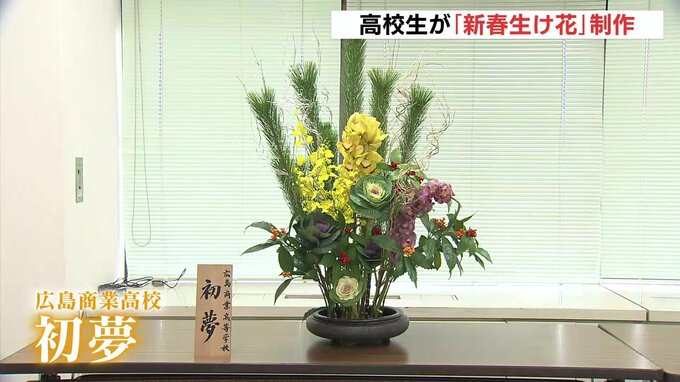 参加したのは広島市立の広島商業高校と広島工業高校の生徒あわせて7人です。この新春の生け花制作は、日頃の活動の成果を披露してもらおうと、広島市教育委員会が呼びかけて実施しています。
