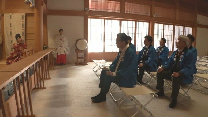 新年の初売りを前に、岡島の関係者が甲府市の武田神社で商売繁盛を祈願しました。