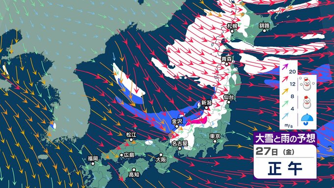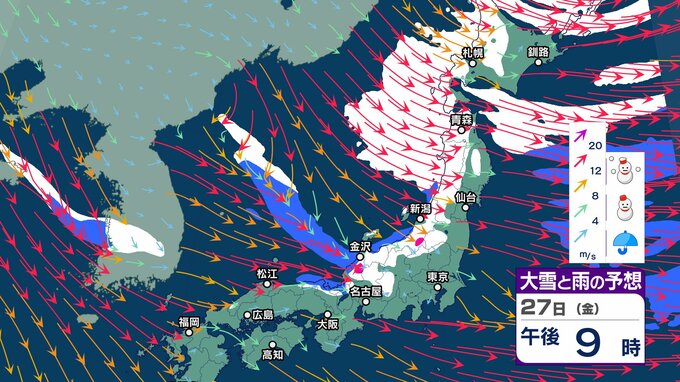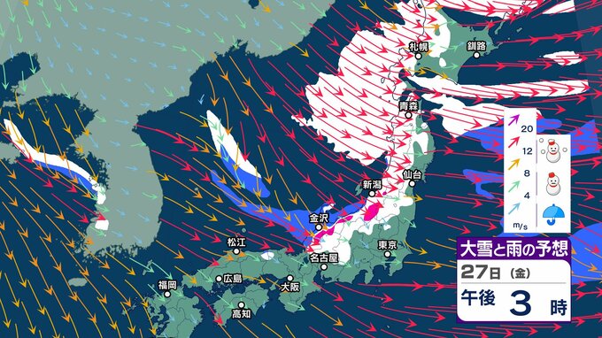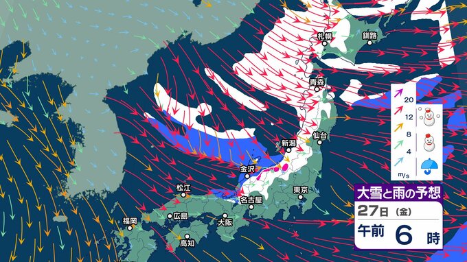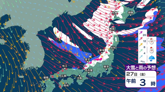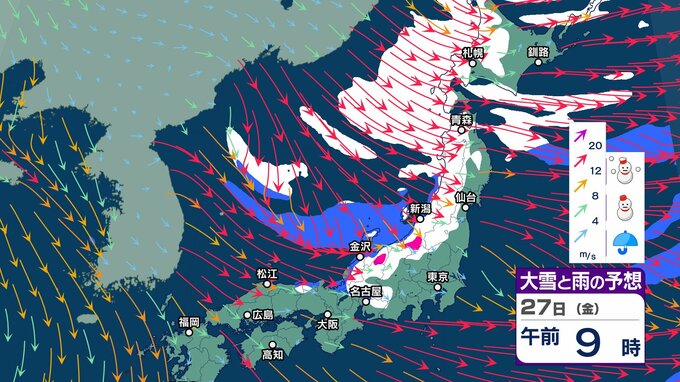 あす28日 “年末寒波ピーク” …北陸から中国地方で “警報級の大雪” のおそれ 近畿中部・南部や四国なども雪雲が流れ込み積雪へ【雪と風の動きシミュレーション】関東の平野部で雪の舞うところも チューリップテレビ 2024年12月27日(金) 16:15 国内 天気 雨と雪の動きシミュレーション27日(金)
