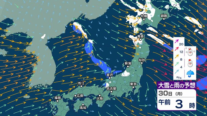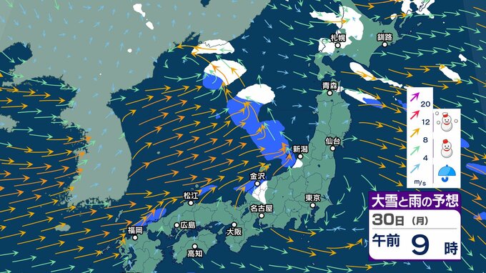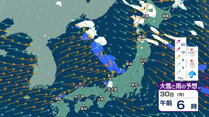 あす28日 “年末寒波ピーク” …北陸から中国地方で “警報級の大雪” のおそれ 近畿中部・南部や四国なども雪雲が流れ込み積雪へ【雪と風の動きシミュレーション】関東の平野部で雪の舞うところも チューリップテレビ 2024年12月27日(金) 16:15 国内 天気 雨と雪の動きシミュレーション30日(月)