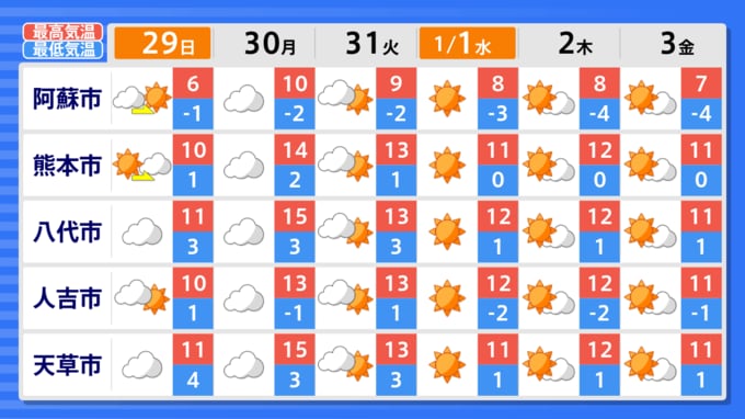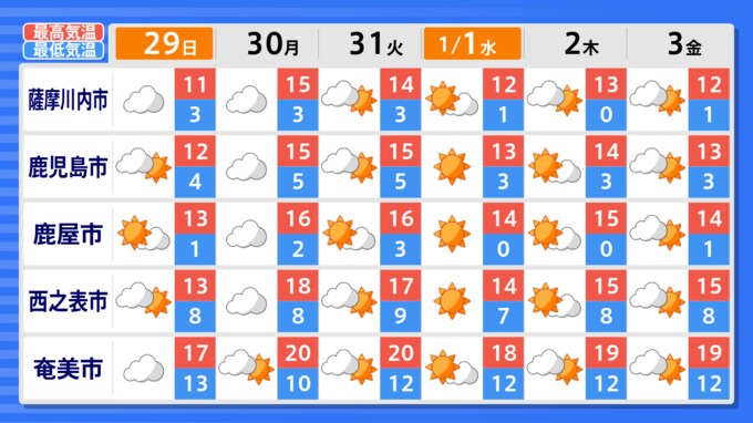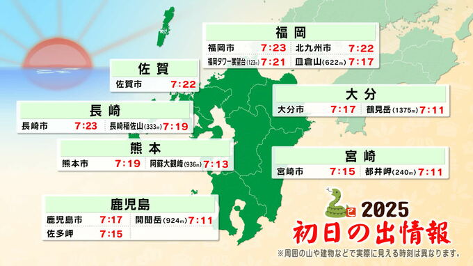 【大雪に関する気象情報】福岡県平地は3cm予想に増える【福岡・佐賀・長崎・大分・熊本 多い所5cm降雪】雨と雪のシミュレーション 南日本放送 2024年12月27日(金) 19:45 国内 天気 正月3が日までの週間予報/初日の出情報 各県の週間予報と九州各地の初日の出時刻は、画像で確認できます。 元日は晴れる所が多く《初日の出》が楽しめそうです。