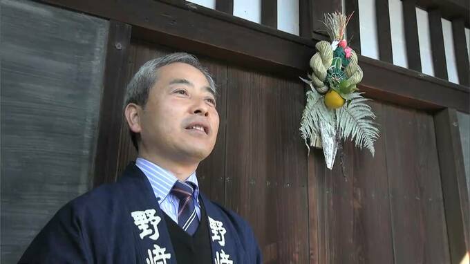 母屋や土蔵などが立ち並ぶ旧野﨑家住宅では、毎年この時期に年神様を迎えるためのしめ飾りを取り付けていて、今年は27個のしめ縄にダイダイやウラジロなどの縁起物を飾り付けました。