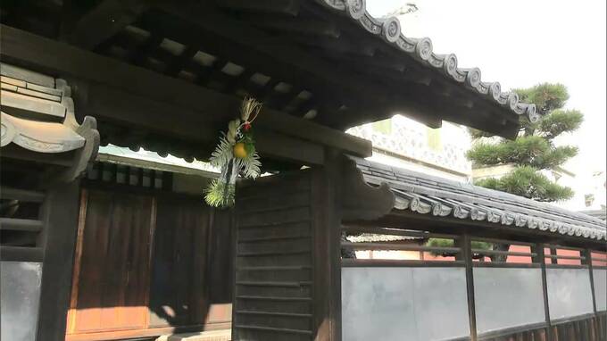 岡山県倉敷市にある国の重要文化財・旧野﨑家住宅に正月用のしめ飾りが取り付けられました。