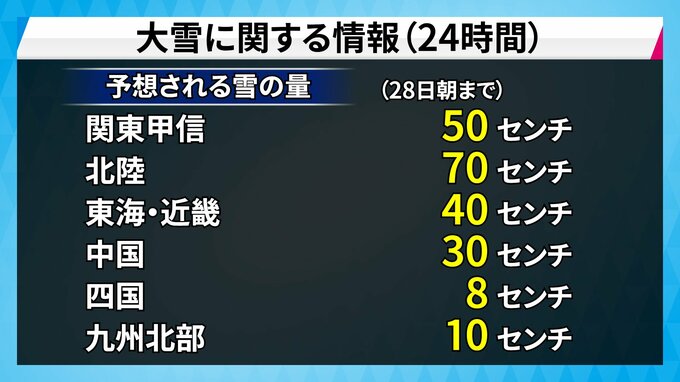 日本海側を中心に、大雪により高速道路の通行止めなどが発生することも考えられますので、最新の気象情報や交通情報を確認してください。