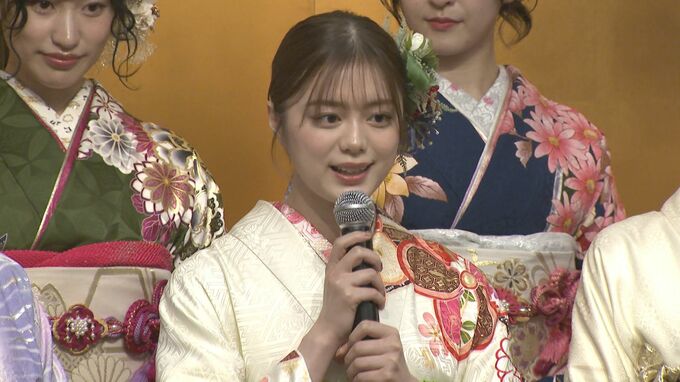 また、白地に梅の刺繍が入った華やかな晴れ着姿で登壇した紺野さんは、”2024年は様々な役を任せていただき、幅のある演技ができたと思う。写真集の出版イベントなどで、たくさんのファンの方に会うことができた年だった”と振り返り、”2025年には、恋愛作品以外の作品にも出演してみたい”と目標を明かしました。