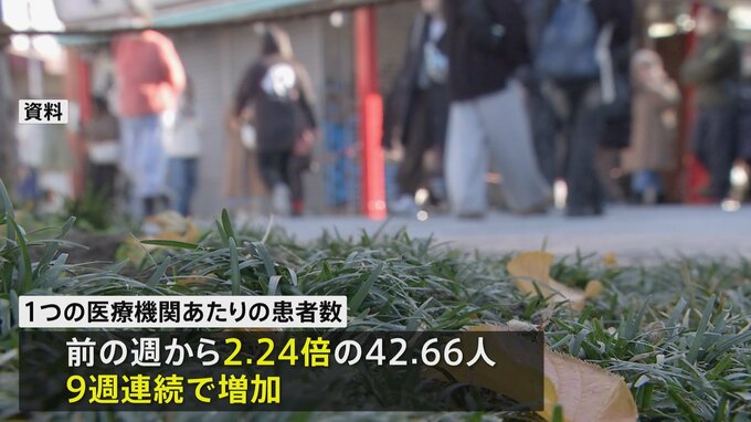 季節性インフルエンザの患者の数が前の週から2倍以上に増え、“警報レベル”の目安を超えました。厚生労働省によりますと、季節性インフルエンザについて全国およそ5000の医療機関から今月22日までの1週間に報告さ…