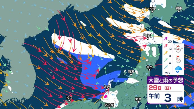 【大雪情報 28日正午更新】日本海側は大雪…平地でも10㎝~40㎝の積雪見込む 上空に氷点下30℃以下の寒気【1日までのシミュレーション 3時間ごと】四国など西日本の太平洋側の平地も積雪や路面凍結に注意 チューリップテレビ 2024年12月28日(土) 12:17 国内 天気 29日 大雪と雨のシミュレーション