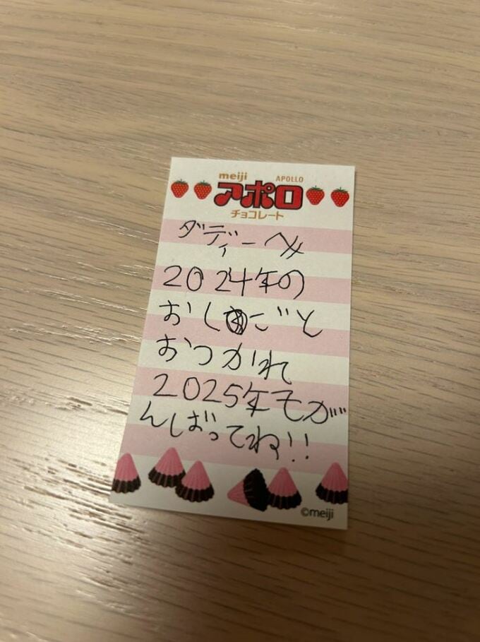 そこには「2024年のおしごとおつかれ」「2025年もがんばってね!!」と、声が聞こえてくるようなしっかりした筆致で書かれていて、大木さんは「深夜3時に沁みちゃう」と、思わずこぼれた心の声を投稿しています。