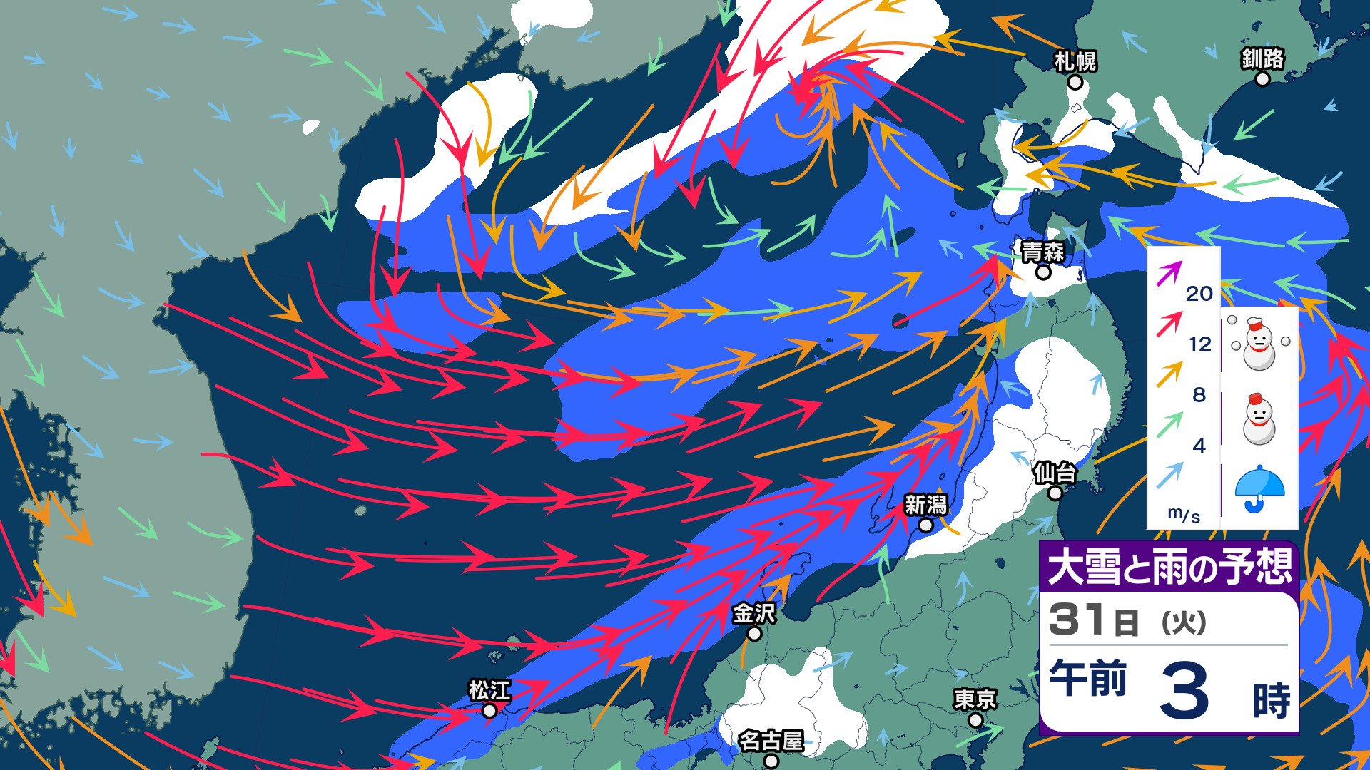 【大雪情報】あす朝までどれだけ降る?北陸では警報級の大雪の可能性/新潟県70㎝ 福井県60㎝ 富山・石川県50㎝【1日までのシミュレーション 3時間ごと】あす明け方にかけ大雪による交通障害に注意・警戒を【28日午後5時更新】 チューリップテレビ 2024年12月28日(土) 16:45 国内 天気 31日 大雪と雨のシミュレーション