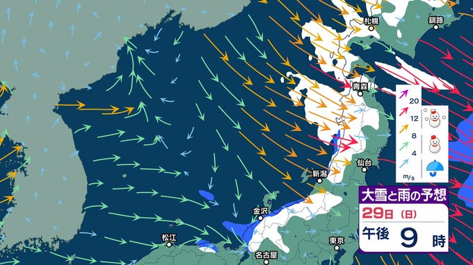 【大雪情報 29日午前7時更新】29日も寒気居座る 全国的に冷え込み厳しく真冬の寒さ【1日までのシミュレーション 3時間ごと】日本海側を中心に積雪増える見込み チューリップテレビ 2024年12月29日(日) 07:24 国内 天気 大雪と雨のシミュレーション 29日(日) 次に年末年始(1日)までの大雪と雨の動きをシミュレーション画像で見ていきましょう。