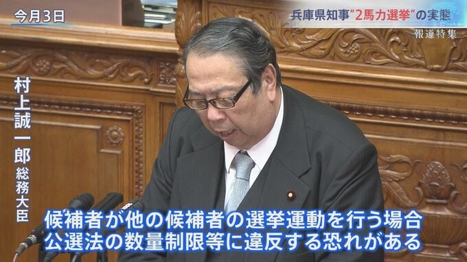 2馬力選挙については12月3日、村上総務大臣が「公選法違反の恐れがある」と懸念を示した。