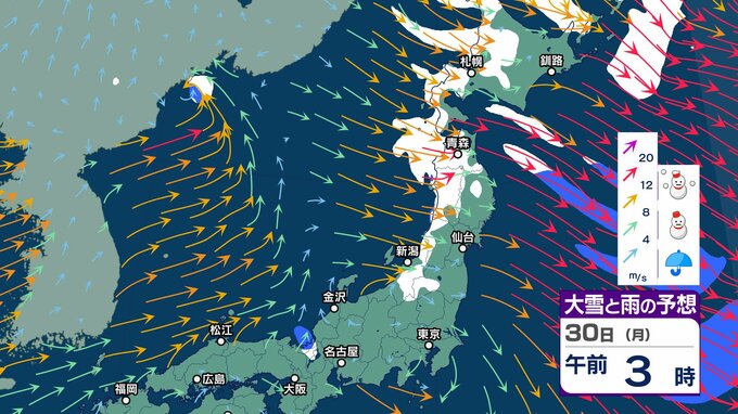 【初日の出 予想】2025年元旦は太平洋側が広く晴れ “寒さ対策” 万全に…一方日本海側は広く雪 “山間部は吹雪の所も”【雪と雨のシミュレーション 2日まで3時間ごと】 チューリップテレビ 2024年12月29日(日) 16:00 国内 天気 30日大雪雨シミュレーション(3時間ごと)