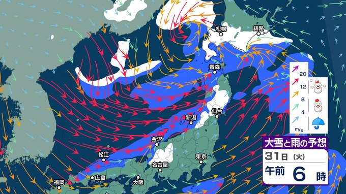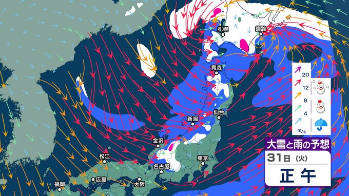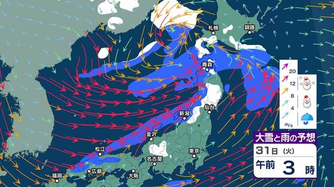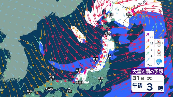 【初日の出 予想】2025年元旦は太平洋側が広く晴れ “寒さ対策” 万全に…一方日本海側は広く雪 “山間部は吹雪の所も”【雪と雨のシミュレーション 2日まで3時間ごと】 チューリップテレビ 2024年12月29日(日) 16:00 国内 天気 31日大雪雨シミュレーション(3時間ごと)