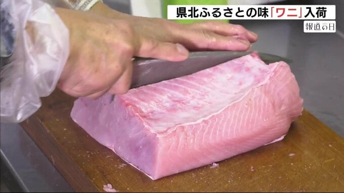 「ワニ」とはサメのことで、保存が効くため、県北の山間部で重宝されてきました。ワニの加工や販売で知られるフジタフーズには、地元の人たちがふるさとの味を求めてやってきました。