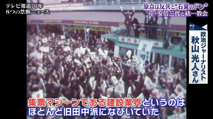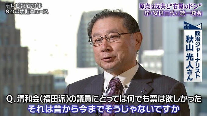 福田氏や安倍晋太郎氏の番記者だった政治ジャーナリスト・秋山光人さんは、福田氏が総裁選で、田中角栄氏に敗北を喫したことが宗教団体の票を頼るようになった背景にあると指摘します。