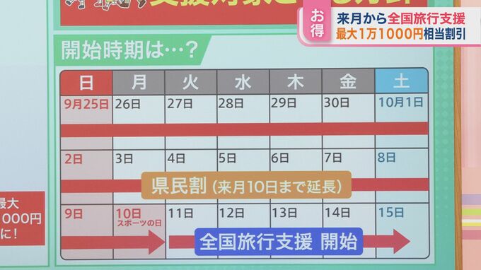 現在実施されている県民割は10月10日まで延長され、その次の日、11日から全国旅行支援が始まります。