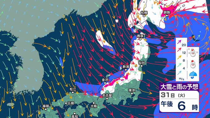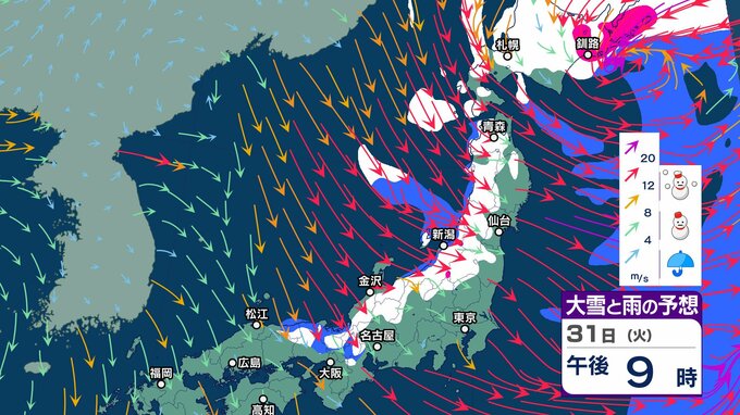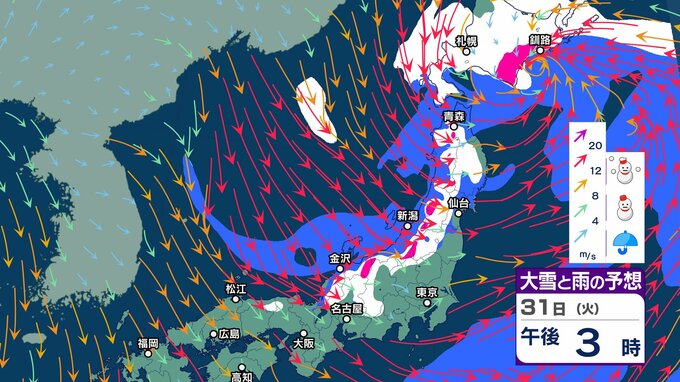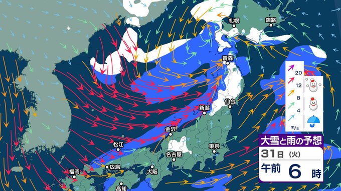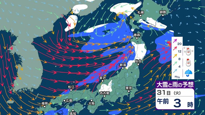 元日にかけ北海道から北陸 “雪強まり吹雪”も…関東以西も風が強まり “交通の乱れ” 注意【1月3日まで 雪と雨シミュレーション】北日本の日本海側中心に雪の年越しへ チューリップテレビ 2024年12月30日(月) 12:55 国内 天気 31日大雪雨シミュレーション(3時間ごと)