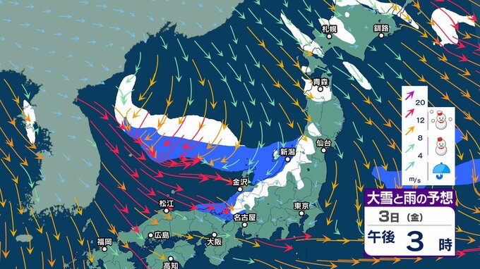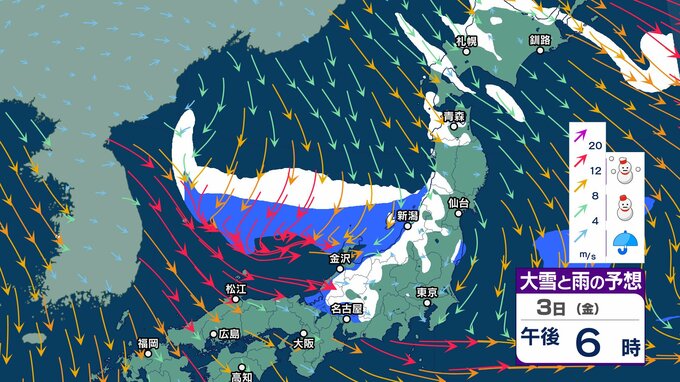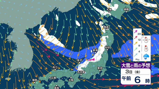 元日にかけ北海道から北陸 “雪強まり吹雪”も…関東以西も風が強まり “交通の乱れ” 注意【1月3日まで 雪と雨シミュレーション】北日本の日本海側中心に雪の年越しへ チューリップテレビ 2024年12月30日(月) 12:55 国内 天気 3日 大雪雨シミュレーション 午後6時まで