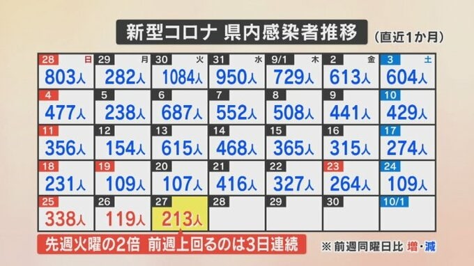 新型コロナウイルスについて山梨県内で27日は新たに213人の感染が発表されました。全数把握の簡略化に伴い、感染者は医療機関の診断と自主検査で陽性が出た人の合計となります。県内で27日感染が確認されたのは213…