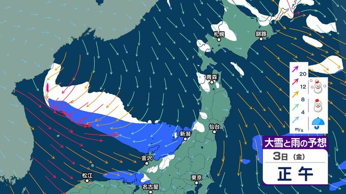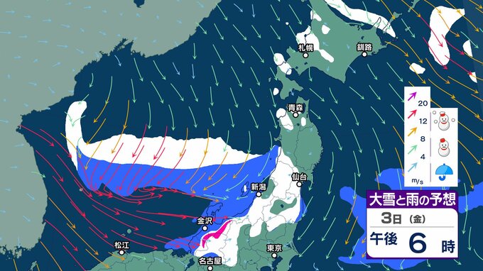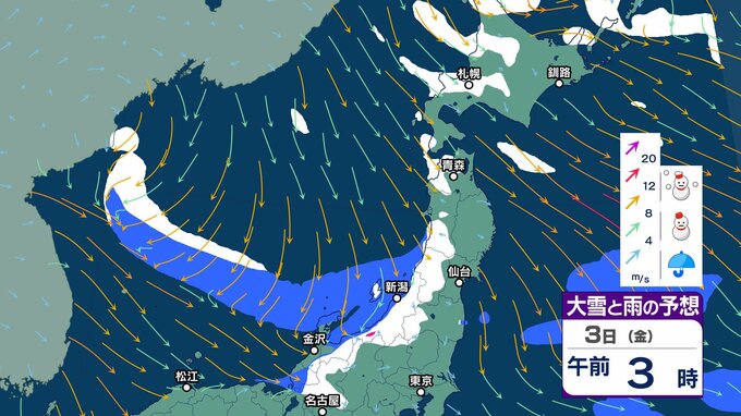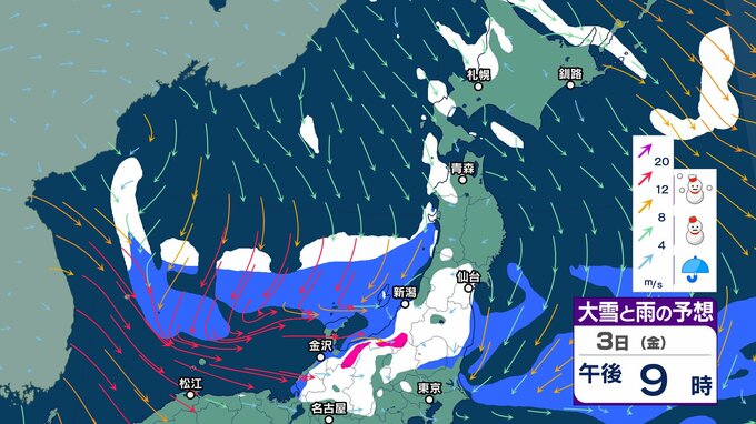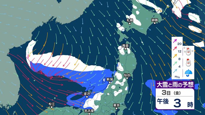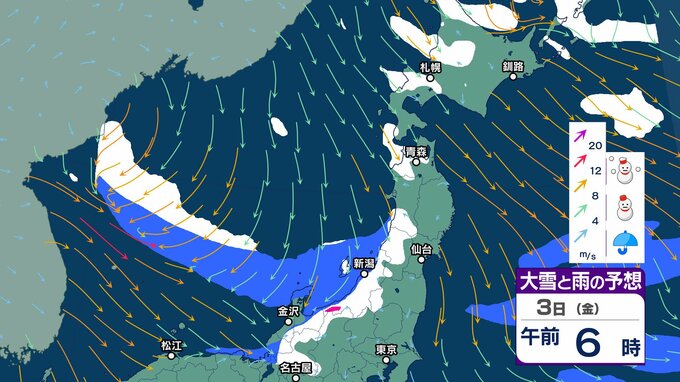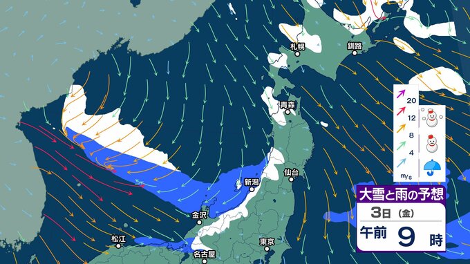 “三が日” の日本海側は雪エリア拡大…暴風雪のおそれも【正月天気 詳報】関東は穏やかな日中から “気温急降下” 寒暖差激しく外出時は万全の寒さ対策を【雪と雨シミュレーション 1月3日まで】 チューリップテレビ 2024年12月31日(火) 09:16 国内 天気 3日 雪雨シミュレーション(3時間ごと)