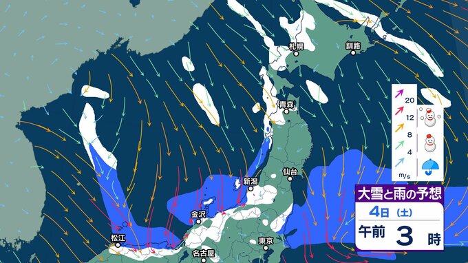 “三が日” の日本海側は雪エリア拡大…暴風雪のおそれも【正月天気 詳報】関東は穏やかな日中から “気温急降下” 寒暖差激しく外出時は万全の寒さ対策を【雪と雨シミュレーション 1月3日まで】 チューリップテレビ 2024年12月31日(火) 09:16 国内 天気 4日 雪雨シミュレーション(正午まで)