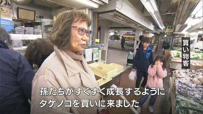 (買い物客)「ブリを買いに来ました」「孫たちがすくすく成長するようにタケノコを買いに来ました」